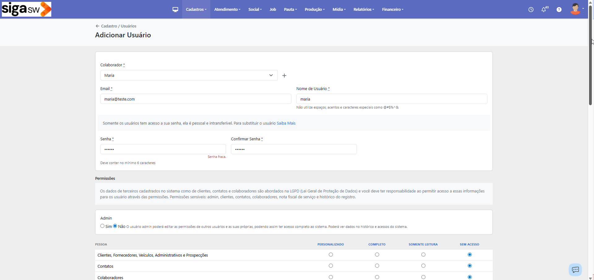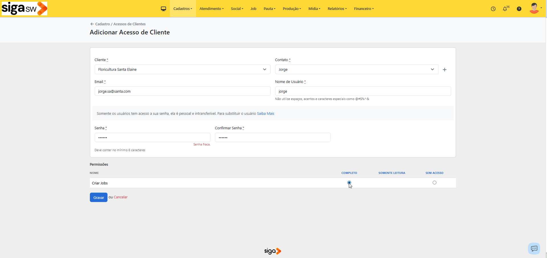 Videoaula: Acesso de cliente* Download Videoaula: Acesso de cliente* (28Mb) Gerenciando usuários no SiGA SW Videoaula: Acesso de cliente* Videoaula: Cadastro e exclusão de usuários* Videoaula: Cliente acessando o SiGA